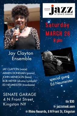 JAY CLAYTON celebrates her 80th birthday with an amazing ensemble of musicians! JAY CLAYTON (vocals), ARMEN DONELIAN (piano), JOHN MENEGON (bass), BOB MEYER (drums), ED NEUMEISTER (trombone)
