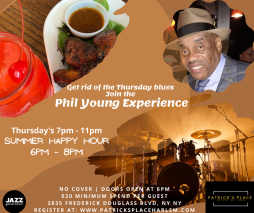 Phil Young is the drummer and leader of "The Harlem Hip". A much-loved figure in the uptown community, Phil Young has played with legendary figures like Bobby "Blue" Bland, Jimi Hendrix, George Benson, Art Farmer and Dizzy Gillespie.
