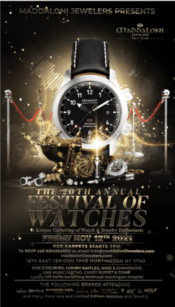Maddaloni Jewelers present the 20th Annual Festival of Watches and the debut of Tonino Lamborghini Watches. Founded in 1981 by Tonino Lamborghini, 2nd generation of the LAMBORGHINI industrial dynasty, the company has evolved into a luxury lifestyle and design powerhouse, creating superlative watches, sunglasses, leather, smartphones, restaurants, jet-setters hotels, food, and beverage, from coffee to vodka and energy drinks, distributed in 40 countries around the world. SWISS-MADE, DESIGNED IN ITALY With the support of the designers of its Centro Stile, constantly under the supervision of Tonino Lamborghini, the company has designed and manufactured timepiece models that, over the years, have become real style icons. Following the Lamborghini family’s vision and constant inspiration, the company’s designers have created unique watches like the Spyder, a watch totally inspired by the shield of the brand’s emblem that encloses the “Miura raging bull,” or timeless pieces like the Cuscinetto, whose first edition goes back to 1983. The new Tonino Lamborghini Swiss Watches collection has been completely conceived and designed by Ferruccio Lamborghini, Tonino’s first son, who represents the third generation of the Lamborghini family. Together with a team of designers and a historic Swiss watch manufacturer, Ferruccio has created eight new lines of timepieces that elegantly combine his father’s past and his experience in the 2-wheels world. A brand-new range of performing Swiss watches dedicated to daring, bold, audacious, intrepid, fearless, and pioneering people, with remarkable resourcefulness. A Unique Gathering of Watch Styles and Collections will be available on display. Friday, November 12th, 7 PM To RSVP, call 212-847-1371