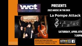 On Saturday, April 8th, La Pompe Attack, led by guitarist Doug Munro, will play at Westchester Collaborative Theater (WCT)’s Music in the Box series. Known for their “hot swing sound,” La Pompe Attack is composed of virtuosic performers, including saxophonist Albert Rivera, guitarist Ben Wood, and bassist Michael Goetz. The concert will feature material from La Pompe Attack’s 2022 chart topping and highly acclaimed release, “Putt Lake Toodleloo.”