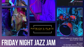 Friday Night Jazz Jam led by Patience Higgins; Musicians and Vocalists welcome to show their talents. Enjoy great Food, Drink and Jazz. See website for more information.